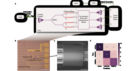 近期,上海交通大学集成电路学院(信息与电子工程学院)郭旭涵教授、苏翼凯教授课题组与上海理工大学顾敏院士课题组在SOI(Silicon on Insulator, 绝缘衬底上的硅)平台上成功实现了基于散射介质的机器学习任务推理。