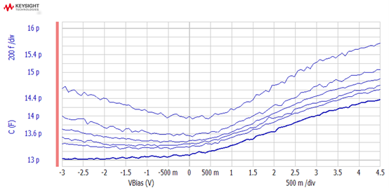 半导体参数测量仪测量电学器件在不同频率下的电容-电压曲线: