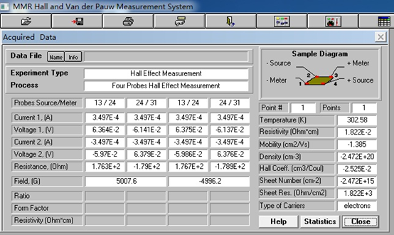 霍尔效应仪测量半导体薄膜的掺杂类型、载流子浓度和电阻率等参数: