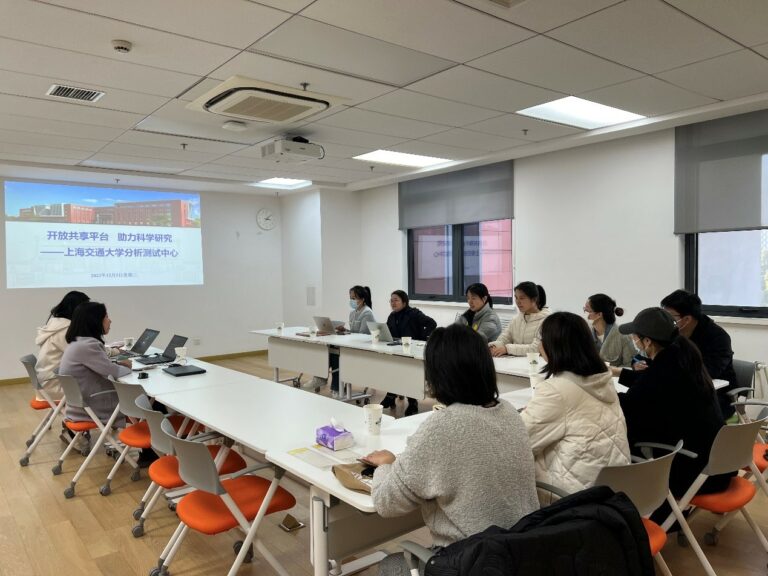 会上,分析测试中心主任助理、综合管理办公室主任朱娜首先从中心概况、人员现状、质量体系、整体架构等方面向AEMD平台教师一行予以细致介绍,并围绕大家关心的问题重点介绍了分析测试中心近年来为提升设备开放共享质量而推行的多项优化方案,强调以优质队伍建设为关键、以质量管理为抓手、以信息建设为保障的工作理念。同时以分析测试中心采购制度建设、网站信息化系统建设、以质为先的质量管理体系、“六位一体”的安全保障体系等为例,介绍分析测试中心通过实体运行、聚焦服务、精算运维、开放共享等方面的诸多尝试,以期不断探索高校分析测试领域“交大模式”。在朱娜介绍完后,AEMD平台与会人员本着求真务实的态度,围绕如何建设公共科研服务平台的运行管理模式、如何提升用户服务质效,以及在大型设备仪器开放共享工作中遇到的问题等进行了深入探讨和交流,大家畅所欲言,在讨论中真诚分享,互鉴互学。