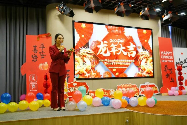 1月23日上午,电院AEMD平台2023年度总结表彰大会暨集体生日会在电院E谷悟课剧场举行,平台主任程秀兰、书记刘毓闻及平台全体教职工出席活动。