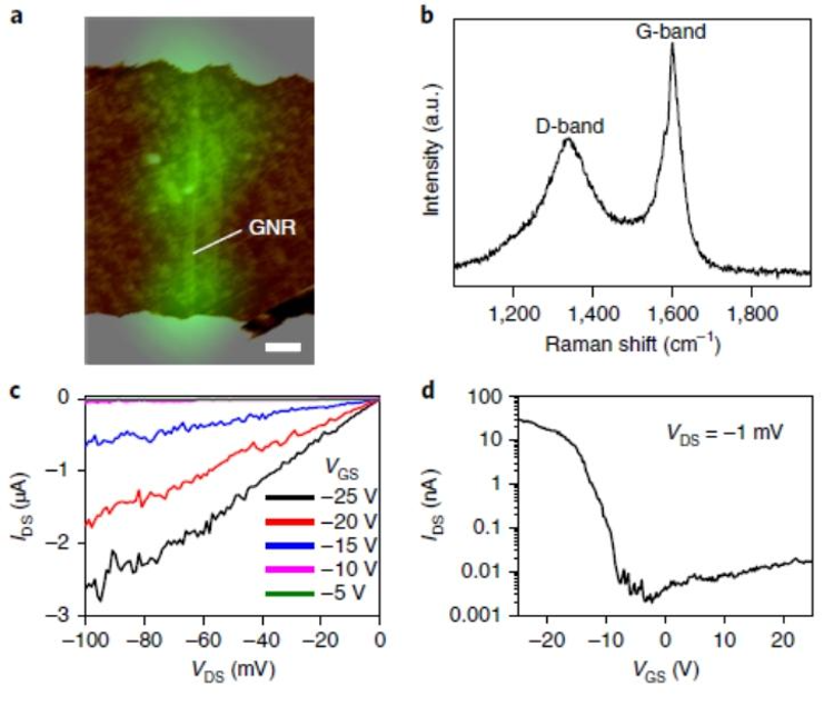 图3. 边缘闭合的GNR的室温电学测量(来源:Nature Electronics)
