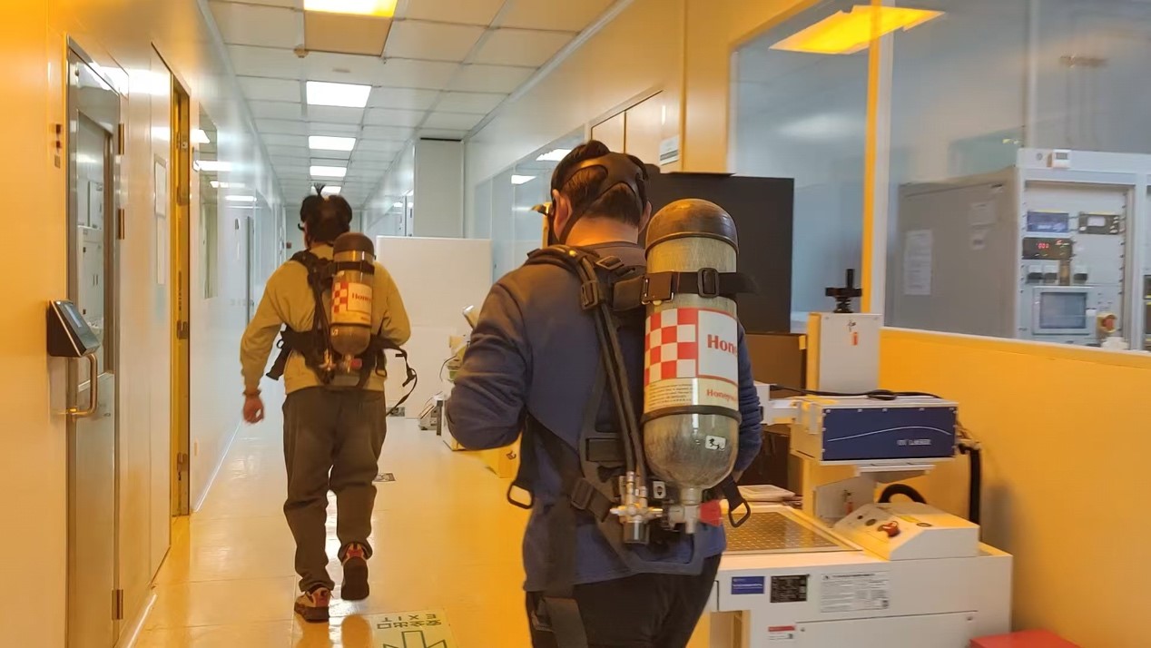 在疏散的同时,平台厂务部的特气负责人员穿戴好灭火设备,迅速进入实验室展开火灾扑救和救援。各区域安全负责人则按照预定应急预案,积极协助区域内师生有序撤离,确保了各自区域内人员的安全无遗漏。
