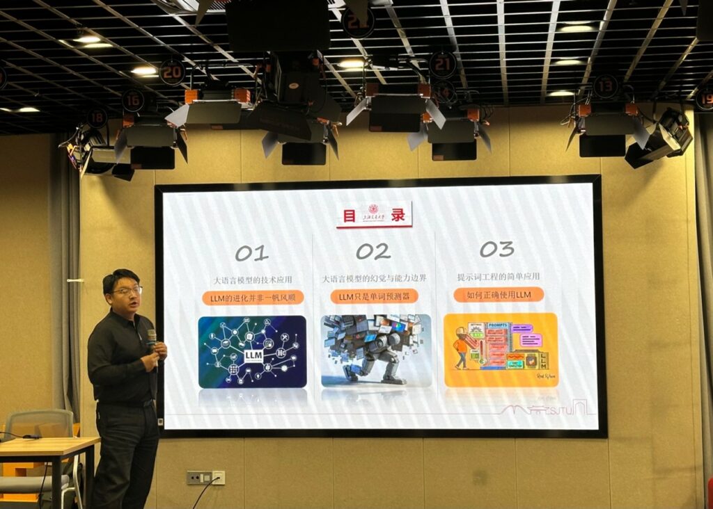 随后,李嘉彬围绕人工智能领域的最新发展与实际应用,展开了内容丰富、深入浅出的精彩讲解。他介绍了大语言模型的技术应用场景与使用建议,帮助大家了解当前AI的发展趋势以及在科研与日常办公中的潜力应用。之后重点讲解了大语言模型的“幻觉”问题与能力边界,从原理出发,详细分析了模型产生错误信息的原因,并结合实例展示了如何通过策略优化模型输出质量。