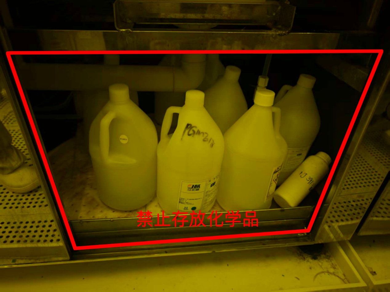 所有化学品须在标签齐全、信息完整的前提下,统一存放于化学品存放柜或化学品冰箱内;严禁在操作台内及操作台下方区域存放任何化学品。