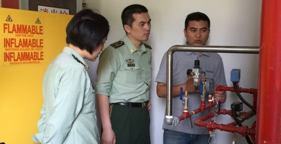 2015年5月20日,闵行消防局对上海交通大学先进电子材料与器件(AEMD)校级平台进行消防验收检查,AEMD 平台建设单位中电四胡勇建经理就设计稿对特气管道、消防通道、化学用品放置等一一解答。