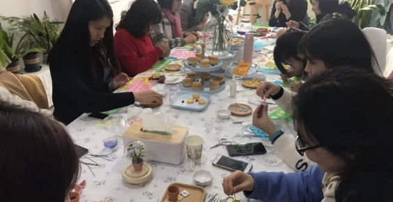 在 “三八”国际妇女节来临之际,为营造出健康、和谐、积极向上的节日氛围,进一步提升女教工爱岗敬业、乐于奉献的工作热情, AEMD平台组织开展了衍纸手工课的庆祝活动。 3月8日中午,平台11名女教职工齐聚手工工作室,在轻松愉悦的氛围中发挥动手能力和创新能力,用一根根小小的纸条制作出了精美的车挂、盆栽、耳坠等艺术工艺品。
