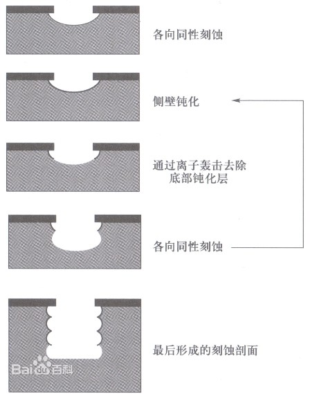 Bosch工艺是指在集成电路制造中为了阻止或减弱侧向刻蚀,设法在刻蚀的侧向边壁沉积一层刻蚀薄膜的工艺。因最早由Robert Bosch提出,亦被称为Bosch工艺。