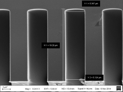 图为应用于MEMS器件制作中的深硅刻蚀工艺。
