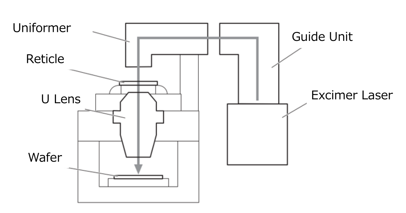 该装置采用 248 nm准分子激光作为光源,将最小工艺节点提升至 180nm 水平。在曝光工艺上采用了步进重复投影式光刻,光源通过掩模(reticle),经光学镜头调整和各种成像误差补偿后, 将掩模上的电路信息以缩微成像的方式投射至晶圆上,同时高精度工件台以步进重复的方式承载着硅片运动,实现die by die的连续曝光,直至整个晶圆铺满掩模图形,设备精度高且曝光速度极快,且整个曝光过程全自动执行无需人为干预。