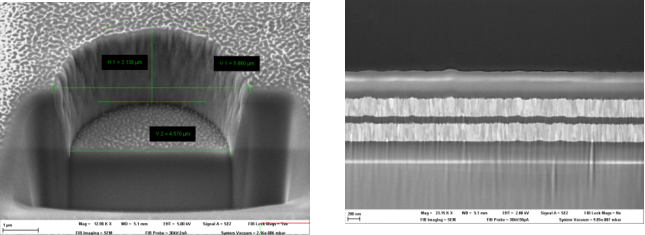 双束系统中场发射扫描电镜主要用于观察、分析材料的微观形貌,聚焦离子束用来对样品进行在微纳米尺度下的图形沉积、切割、刻蚀、透射样品制备、电路修复及原子探针针尖加工等工作。