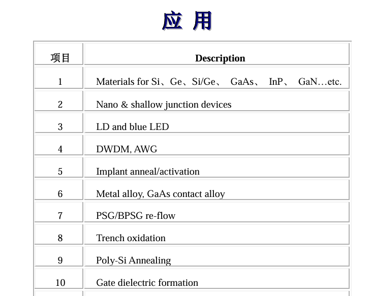 离子注入后的离子激活工艺, 以及其他样品的热处理工艺。
