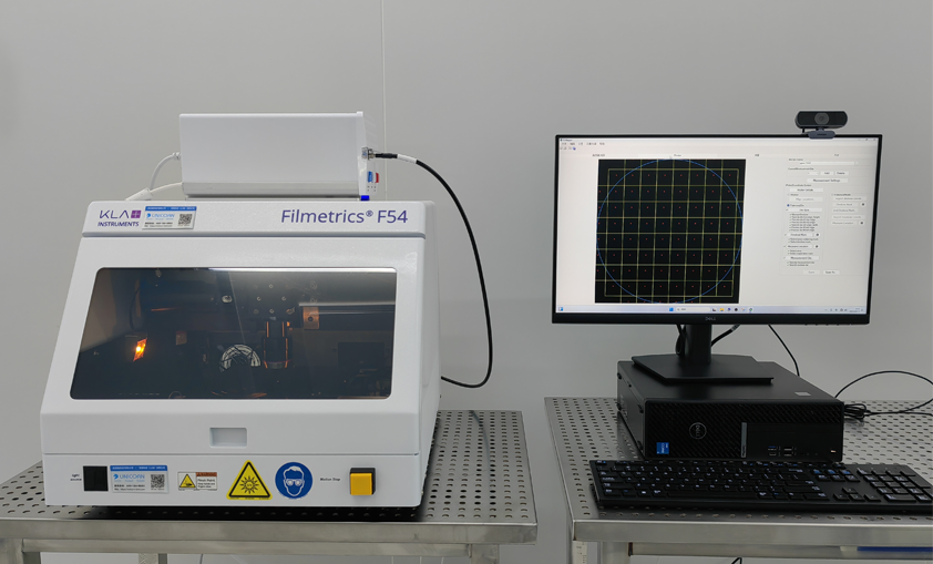 该设备可对样品进行无接触的无损测量,可测量薄膜厚度,测量迅速、操作简单,精度通常可达到纳米级。波长范围可以从紫外到红外可选,用来测量超薄膜、多层薄膜厚度等等,薄膜厚度从几纳米到百微米范围,自动样品台可以实现晶圆表面的自动厚度mapping。对于图形片测量,需要聚焦型光斑,并配合图形识别功能以实现精准微区位置的测量。在AEMD平台主要用于介质薄膜、有机薄膜、aSi等的厚度测量,对于已经图形化的图形,利用图形识别功能实现自动化微区测量。