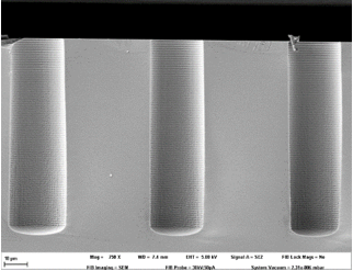 硅通孔(TSV)技术是用垂直硅通孔形成穿透硅基片形成电导通的方法,是三维集成电路中堆叠芯片实现互连的核心工艺。实现硅深孔的高质量铜填充,是TSV技术的关键工艺。AEMD通过使用甲基磺酸铜体系电镀液和新型添加剂,增加抽真空和预润湿等前处理,可以实现最大深宽比10:1,最大孔深250μm,最小孔径10μm的TSV的无孔隙,高填充率的自底而上的超级填充。