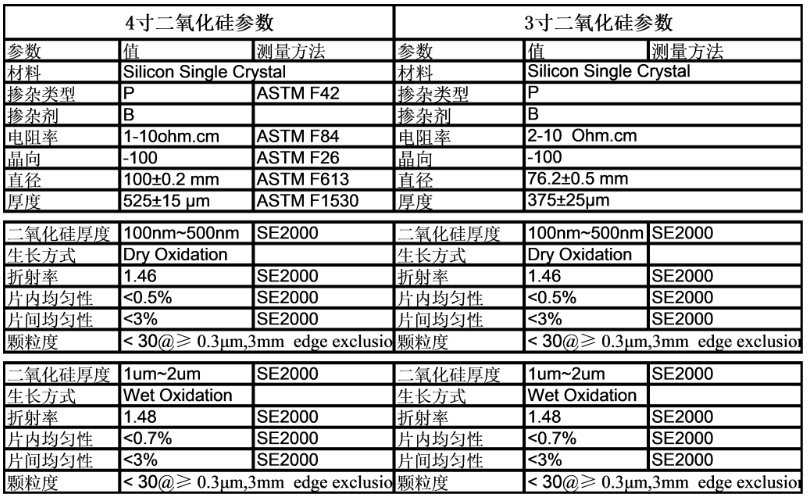 AEMD向用户提供干法、湿法氧化的不同参数的二氧化硅片。价格优惠,领用方便。